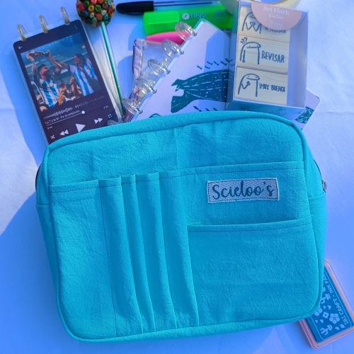 DETALLES: - Organizador amplio confeccionado en Tusor. - Bolsillo externo con divisiones, en su interior también posee bolsillo. - Colores disponibles: Beige, verde agua, marrón, rosa viejo, azul, camel. - MEDIDAS APROX: 23(ANCHO) X 18(ALTO) X 6(BASE).