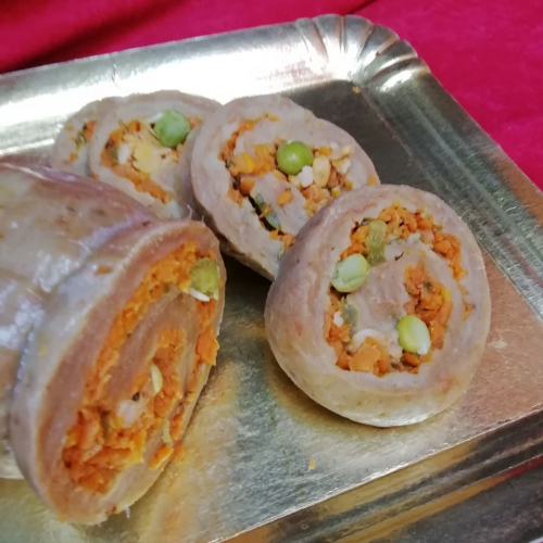 Matambre de Seytan relleno, listo para consumir o frezar Contiene zanahorias, ají, arvejas, verduras, condimentos