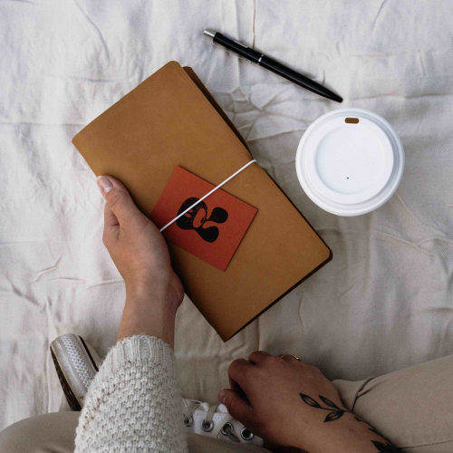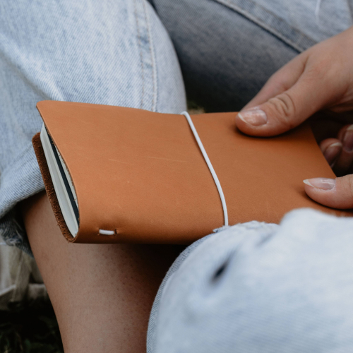 Cuaderno de cuero con elásticos tamaño A6 (10x15cm aprox.), viene con dos cuadernillos a elección