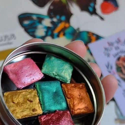 Acuarela en formato estrellita, color orquidea. Cambia de color desde magenta, lila y azul.