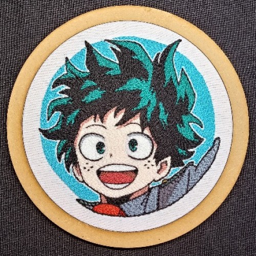 Bordado a mano en tecnica de punchneedle, de Midoriya, del manga y anime Boku no Hero.