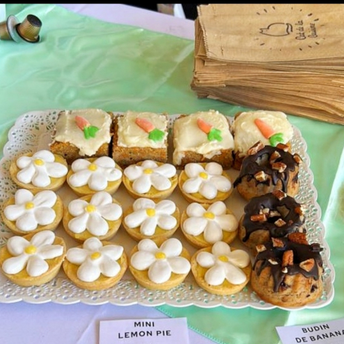 Distintos productos de pasteleria decorada para merendar (vegano)