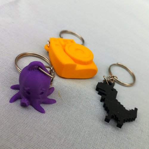 Llavero de fotos con plaqueta para colocar una foto propia Llavero violeta de pulpo Llavero de dino de google negro con acabado en glitter Material PLA (Plastico a base de maiz biodegradable)