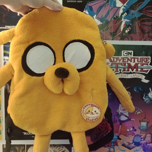 Mochila de peluche de Jake el perro. Hecha a mano con polar extra suave, interior de tela reutilizada.