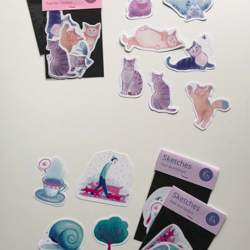 Stickers de Gatitxs y de Sketches, agrupados o sueltos.