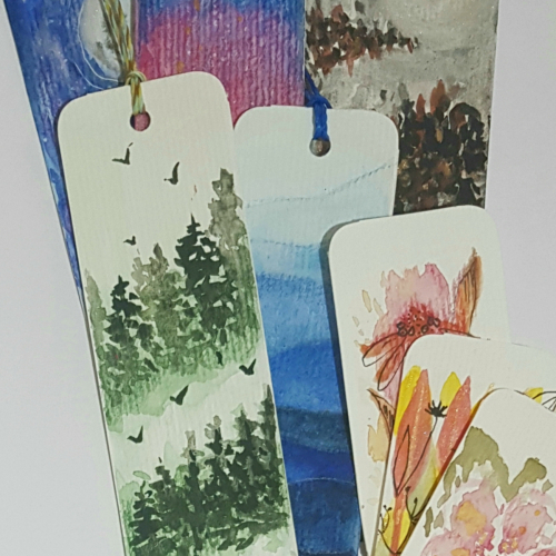Marcapaginas ilustrados, hechos a mano, pequeñas obras en acuarela, gouache, o lapices de colores, collage, etc