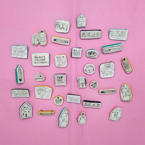 Pines de cerámica realizados a mano Técnica: transferencia gráfica a mano alzada sobre arcilla
