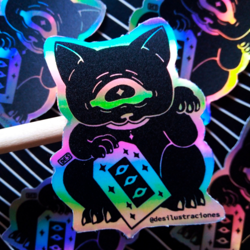 Sticker en vinilo holográfico, resistente al agua. Medidas: 5,5x4,5cm