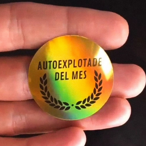 Calcomanías autoadhesivas en papel holográfico dorado de 4 x 4 cm.