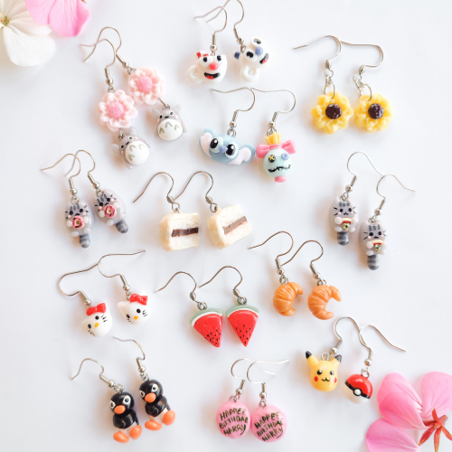 Aros con diseños hechos a mano en porcelana fría. Todos los anzuelos y pasantes de acero quirúrgico!