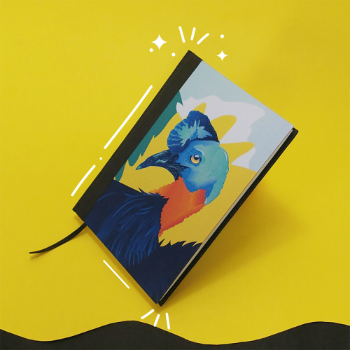 Cuadernos A5 de tapa dura y diseños propios, con hojas bookcel de 80g lisas o punteadas.