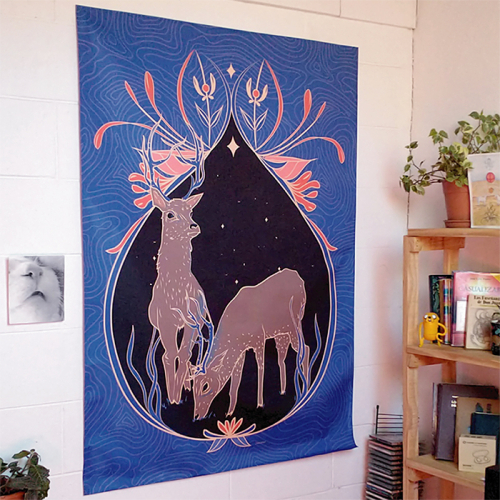 Tapices de pared impresos en tela cordura con obras propias.