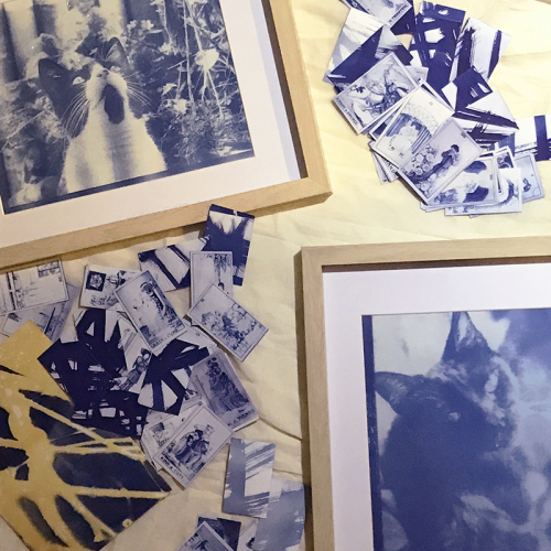 Copias en cianotipia de fotografías análogicas y estenopeicas.