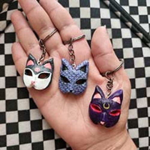 Las mascaritas están esculpidas en porcelana fría. Se la pueden llevar como collar, choker, llavero o arito.