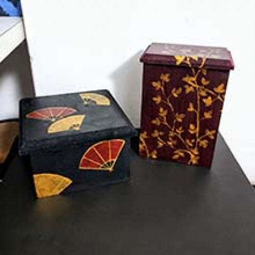 Las cajas están decoradas con diseños japoneses tradicionales. Son de 7x10 o de 8x8 cm.