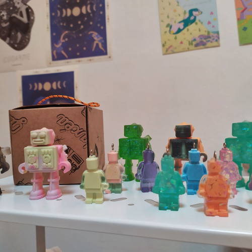 Robots de resina. Colgantes de LEGO de resina con cadena de acero quirúrgico.
