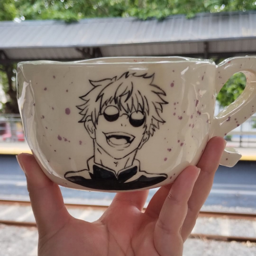 Tazon de cerámica hecho a mano pintado con diseño de Gojo de Jujutsu Kaisen