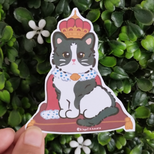Sticker de gatito de la realeza inspirado en mi pequeño Kyu.