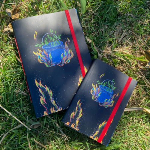 Cuadernos artesanales con ilustraciones de Iara Sapira Variedad de diseños Tamaños A5 y A6 50 hojas de papel reciclado Elástico Solapa Señalador