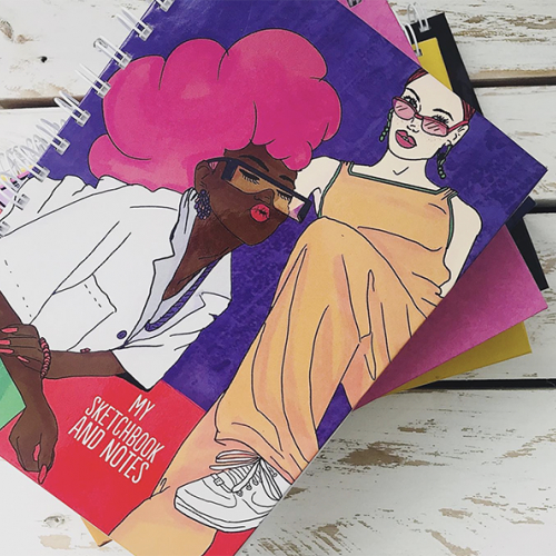 SKETCHBOOK AND NOTES Un cuaderno pensado para que en la mitad puedas hacer bosquejos, dibujos o lo que tu creatividad te impulse y en la otra mitad puedas completarlo con textos.