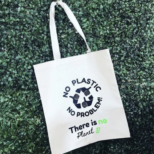 Tote bag reutilizable en lienzo de puro algodón medidas 30x30cm aprox. con asas largas de gross de algodón y estampa + frase "No Plastic - No problem - There is NOT PLANET B", color de estampa a elección según stock disponible.