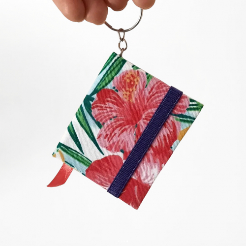 Llaveros, con: - 60 hojas recicladas, punteadas o bookcel; - tapa dura entelada; - elástico; y - cintita señaladora.