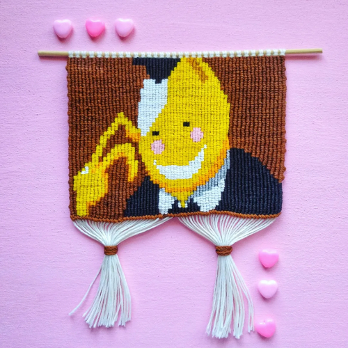 Cuadro en macramé con hilo encerado de 10 cm x 13 cm, listo para colgar. Decora tu espacio con un producto artesanal hecho con mucho amor!
