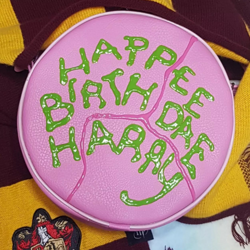 Cartera confeccionada integramente en cuerina rosa, forrada en algodón estampado. Con Correa regulable, y bolsillo trasero con cierre. Medidas: Diámetro: 21 cm. Profundidad: 9cm