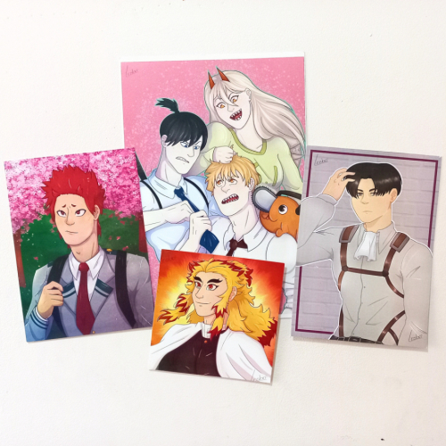 Pósters o prints de diferentes tamaños, desde A4 hasta 13x13, con distintos personajes y series.