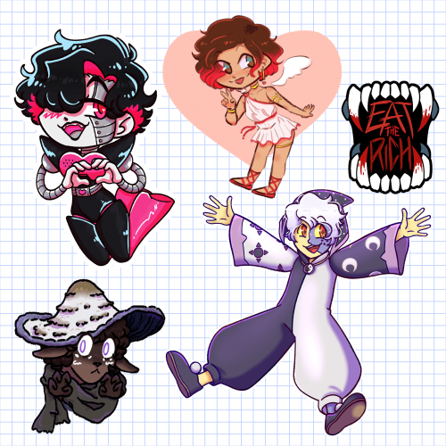 Stickers de personajes fandom, anime, y contenido original.