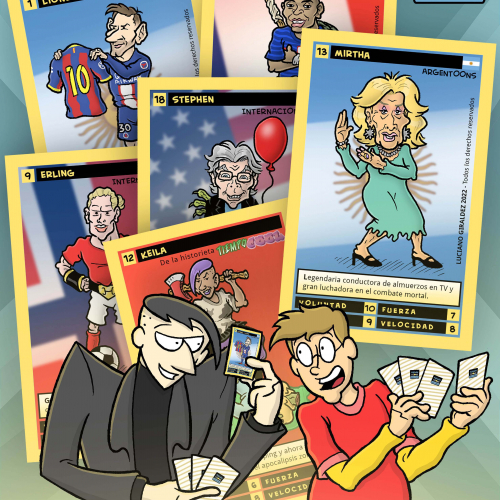 Hice 3 mazos de naipes coleccionables con caricaturas y personajes propios: "Cardtoons", "Internacionales" y "Cardtoons Extra".