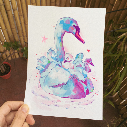 Láminas impresas para decorar - Cisnes en gouache
