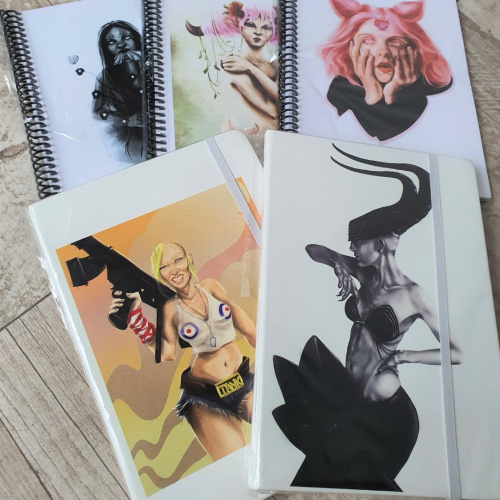 Cuadernos tapa dura y tapa blanda A5, hojas blancas de 80gr. Ideal para notas y bocetos.