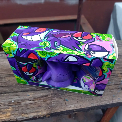Caja que contiene una taza de cerámica, una carta alterada con su base, un llavero acrílico, un mousepad y una figurs impresa en 3D.