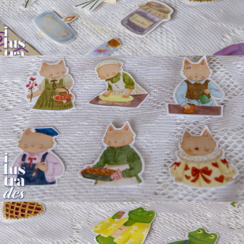 Stickers varios. -Ranitas -Afirmaciones <3 -Martita (gata oc) -Cottage core