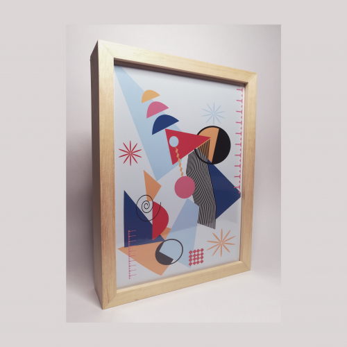 Composición abstracta digital enmarcada en formato cajón de madera, se convierte en un objeto de diseño original para ambientar y darle color a tus espacios. 16x21cm