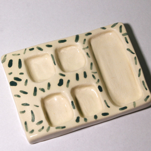 Paleta para acuarela/acrilico/tempera/etc de cerámica con pintitas de engobe
