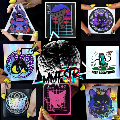 Stickers 8 motivos a eleccion tipo holograficos/blancos/neon diemensiones aproximadas 10x10cm