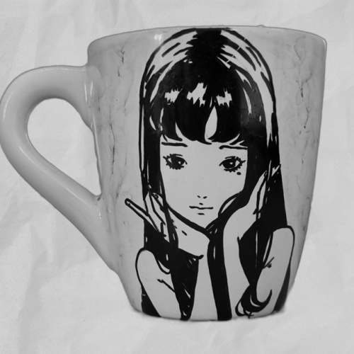 Taza Tomie hecha a mano, blanco y negro.