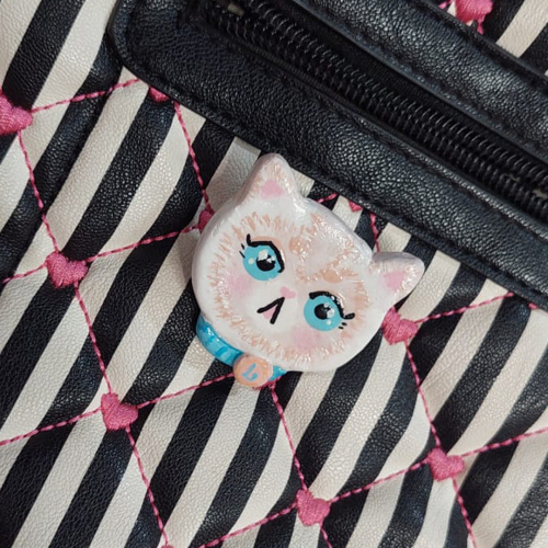 pin elaborado en arcilla, pintado a mano y esmaltado.