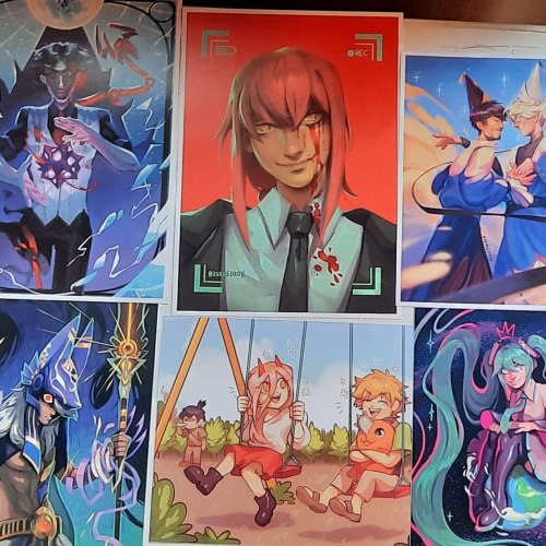 Láminas a4 y tamaño postal de ilustraciones basadas en juegos y series