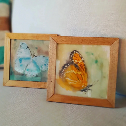 Láminas originales de formato pequeño en marco de madera natural