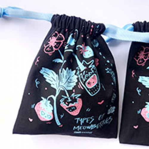 Bolsita de lienzo 100% algodón Interior: Lienzo crudo de algodón. Tamaño: 18.5 x 21 cm. Cinta celeste de 65 cm Impreso en serigrafía con tinta al agua a dos colores.