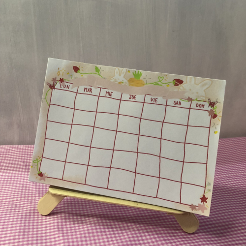 Bloc de calendario mensual en blanco con duracion de hasta 12 meses, ideal para ajustarlo a nuestras necesidades. Disponible en versión rosa.