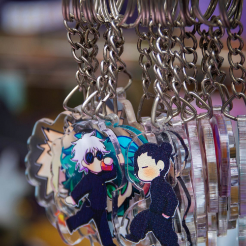Llaveros de Gojo y Geto en la escena donde caminan, para compartir o comprar individual