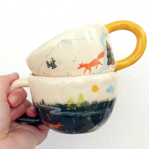 Cerámicas ilustradas hechas a mano inspiradas en la naturaleza.