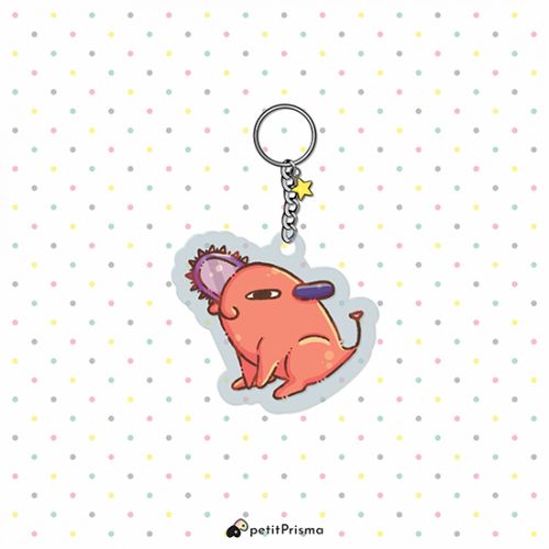 Llavero impreso sobre acrílico transparente. Impresión simple faz. Cadena y argolla metálicas. Con estrella decorativa (color al azar). Medidas: 50×55mm ... Ilustrado por Sabrina Saberhagen