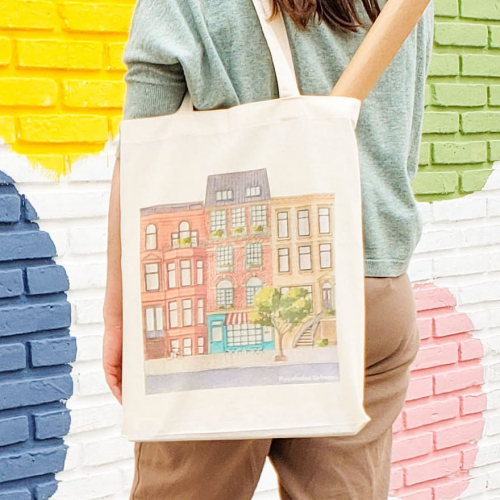 Bolsa de tela de 35x45cm en lienzo 100% de algodón estampada con ilustración propia.