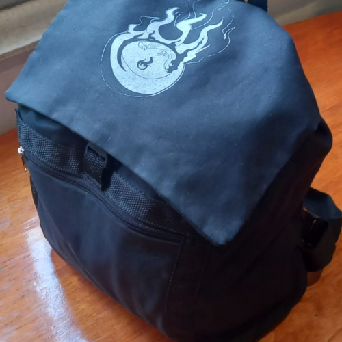 *Material gabardina y tropical. *Con cordón para ajustar y cerrar la mochila. *Solapa, incluye botón para cerrar la mochila. *Correa de nylon.