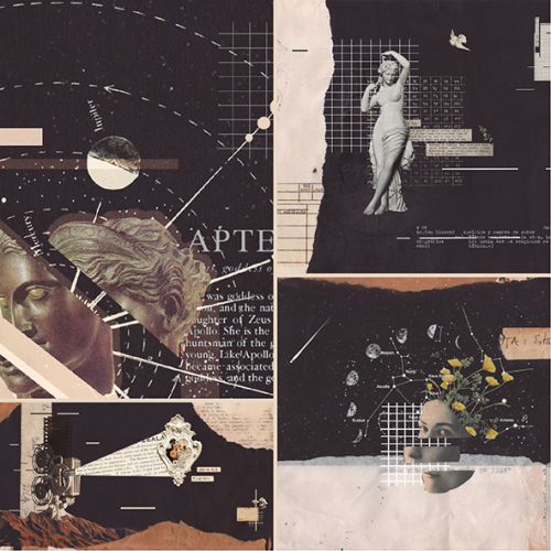 Realizo collages en formato de postales. ¡Lo hago manual y digitalmente! Siempre está bueno combinar ambas ;)